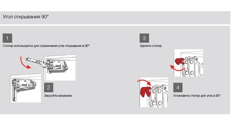 • Два различных варианта угла открытия